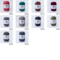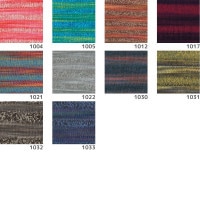 ・従来品の25g玉巻が100g玉巻の仕様で、かすりの部分と杢の部分の色の変化がより楽しめる糸です。